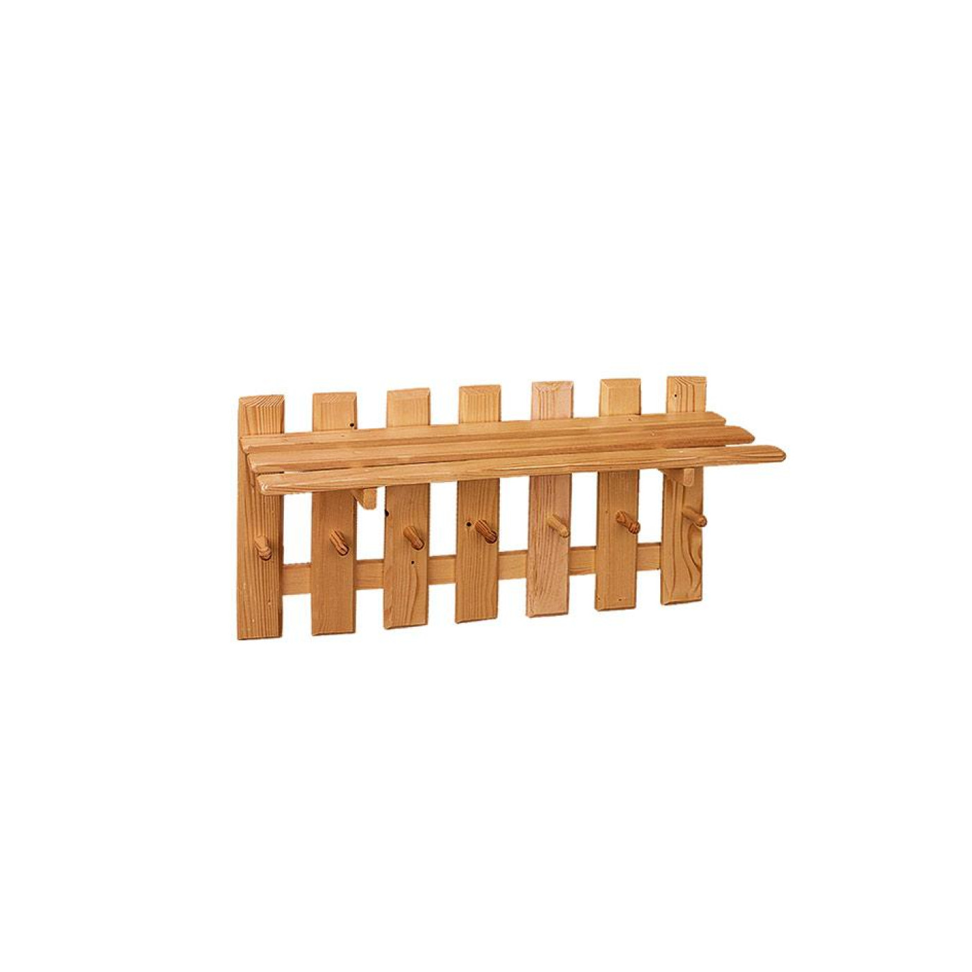 Półkowieszak drewniany sosnowy, wykonany w całości z naturalnego litego drewna. Grubość płyty sosnowej 2 cm.