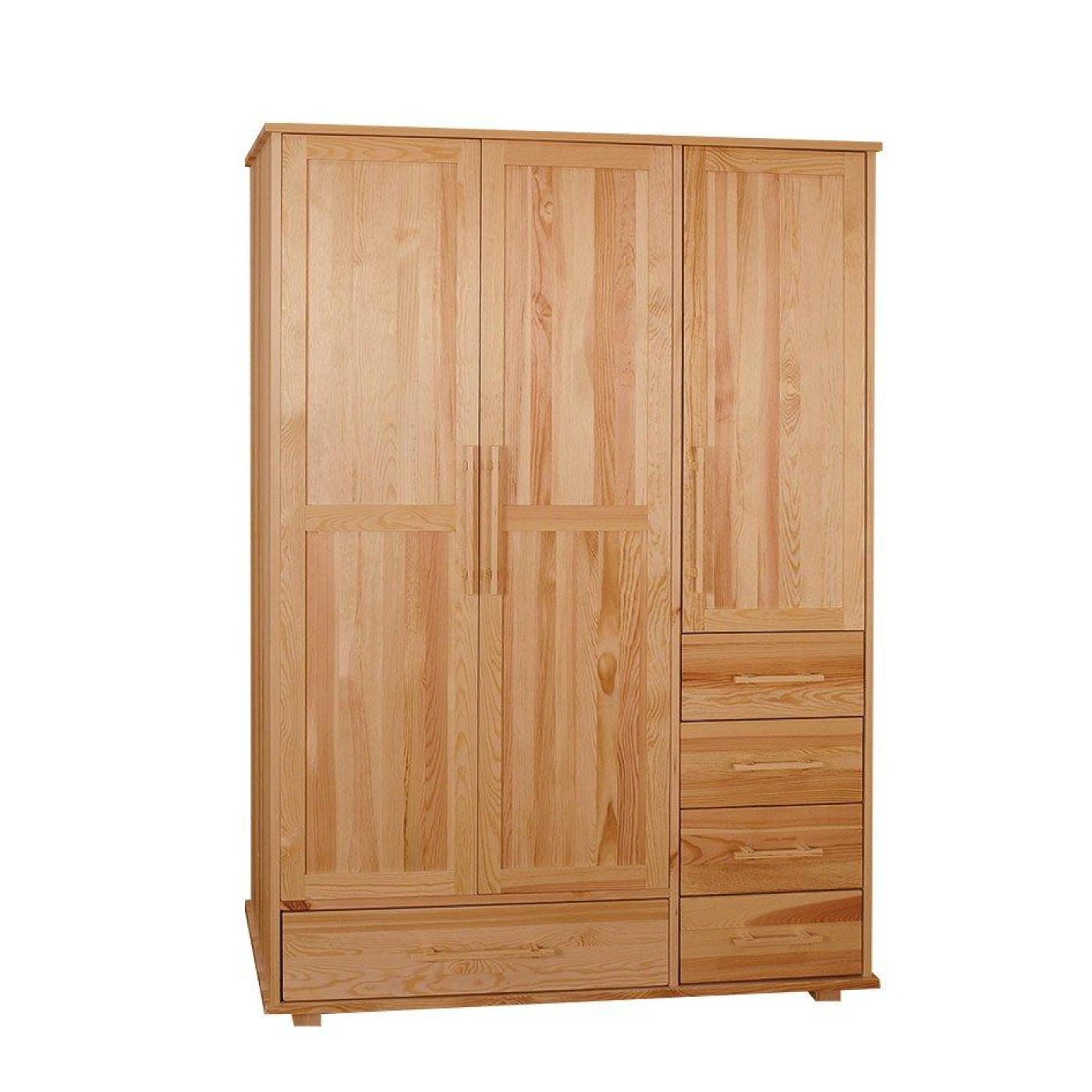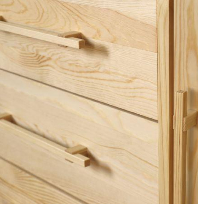 Grubość płyty sosnowej 2 cm. Plecy i dna szuflad to płyta pilśniowa. Szafa trzydrzwiowa i pięcioszufladowa.